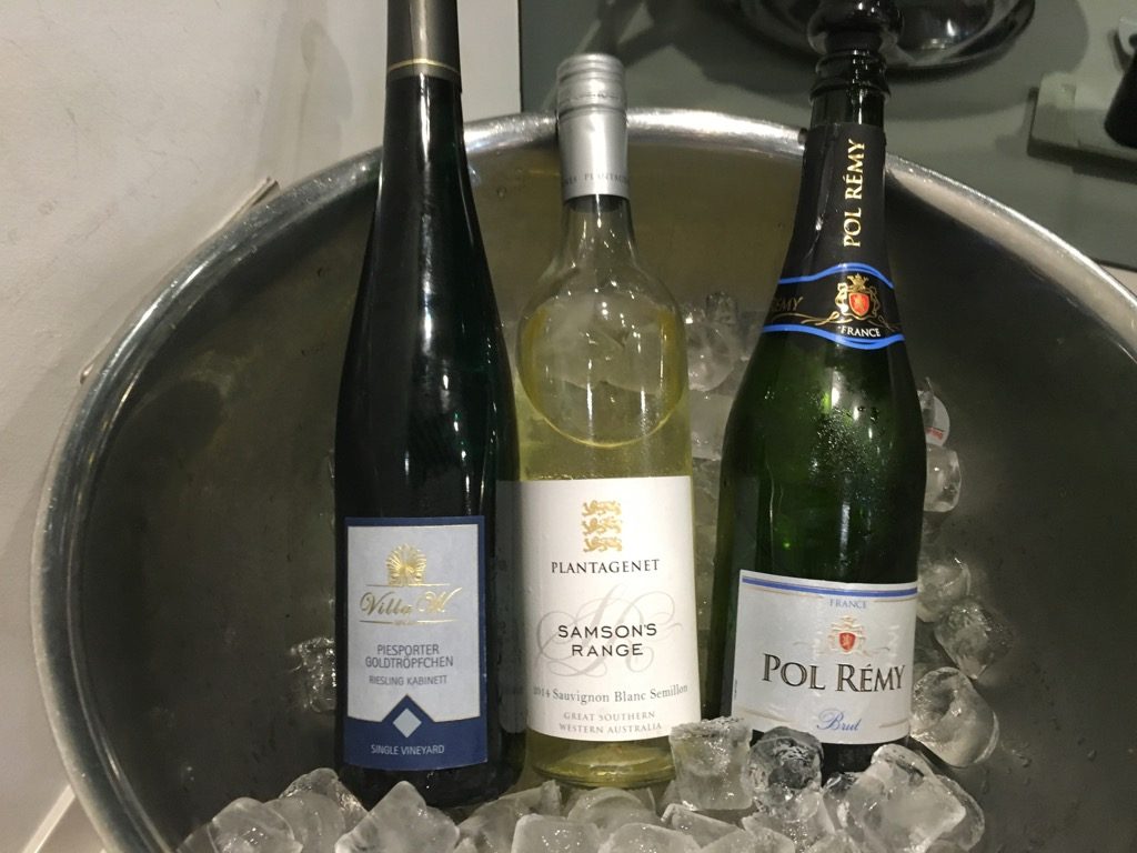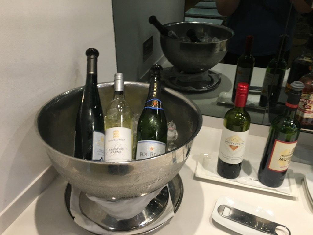 In Kühlschränken gab es eine Auswahl an alkoholfreien Softdrinks, Bier, Wasser und Säften. Außerdem standen mehrere Weiß- und Rotweine auf dem Buffet, sowie verschiedene Spirituosen. Auch Heißgetränke wie Kaffee und Tee konnte man sich mit einem Kaffeevollautomaten zubereiten.