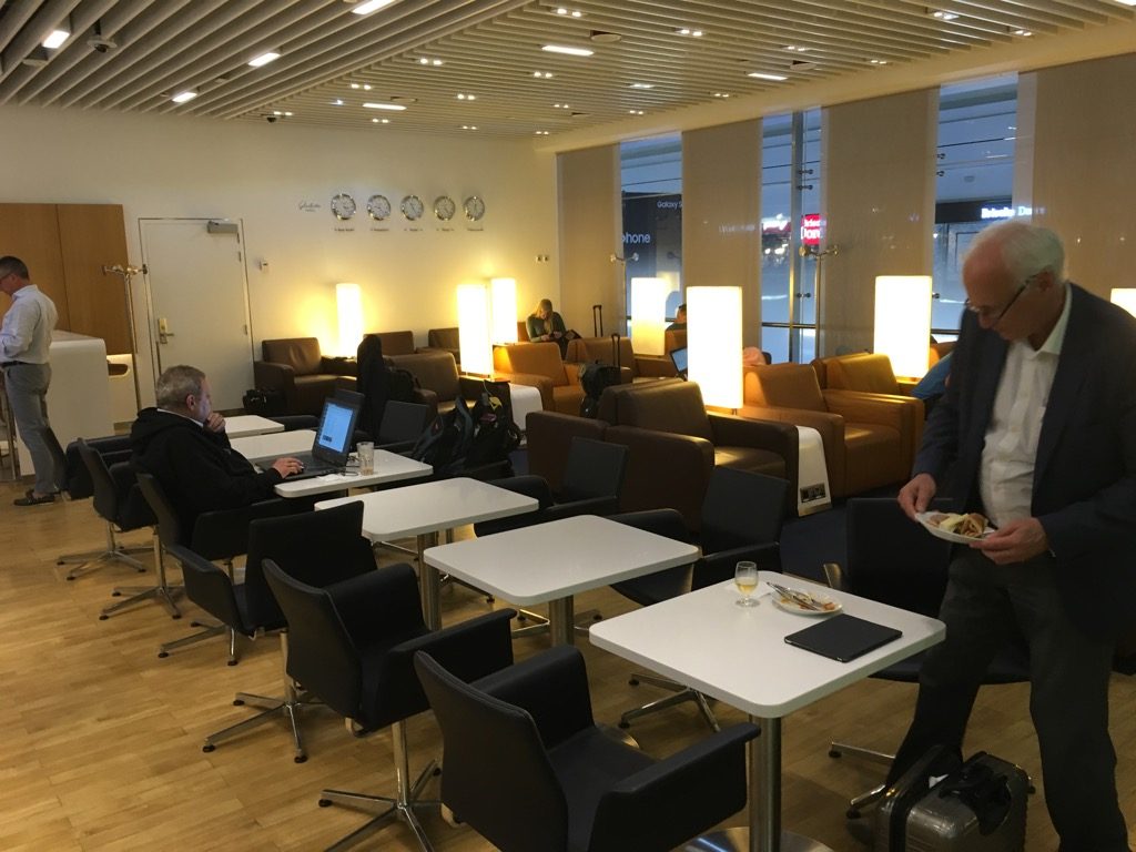 Es sind fast zeitgleich eine 747-400 von LH und eine A330 von Swiss im Abflug. Es gibt damit sicherlich über 100 Businessgäste plus Sens und Hons und Frequent traveler, die auch noch als Eco Flieger in die Lounge wollen.