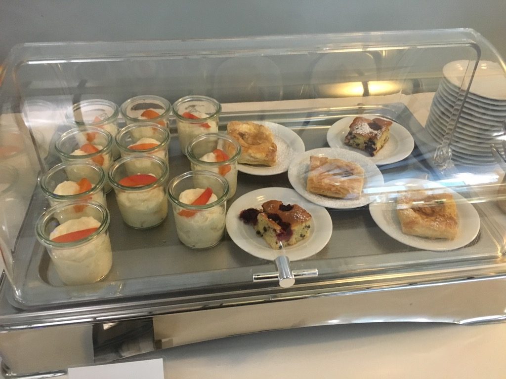 Neben den üblichen Nüssen und Haribo Süßigkeiten, gab es auch eine kleine Dessert Vitrine mit Kuchen und einem Reispudding.