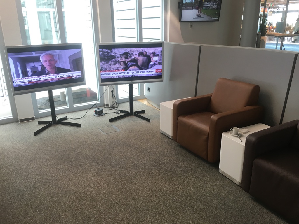 Für alle die noch ein wenig arbeiten müssen oder wollen, gibt es zwei Workstations mit Stromanschlüssen. Die Lufthansa Senator Lounge Nürnberg verfügt zwar über schnelles und kostenfreies WLAN, allerdings gibt es hier keine Drucker oder feste PCs.
