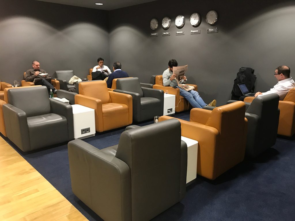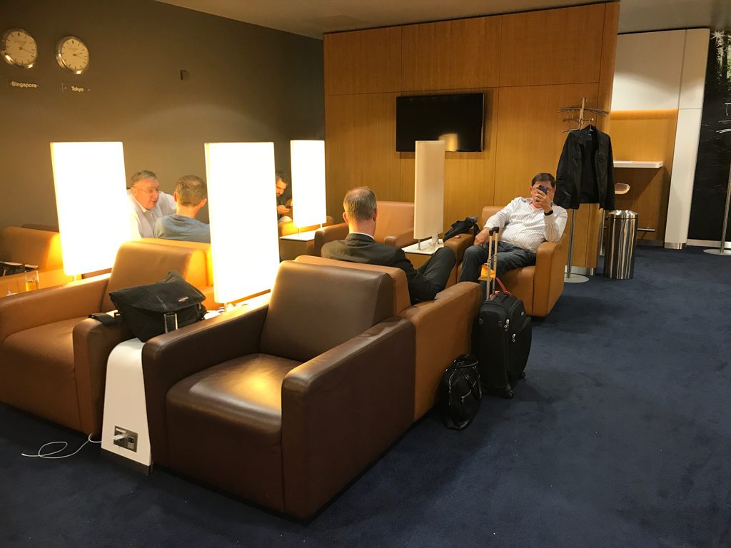 Weiterhin gibt es in beiden Lounges eine großzügige Sessellandschaft mit identischen Sesseln, die aber in der Senator Lounge zudem mit gedimmten Lampen ausgestattet sind.