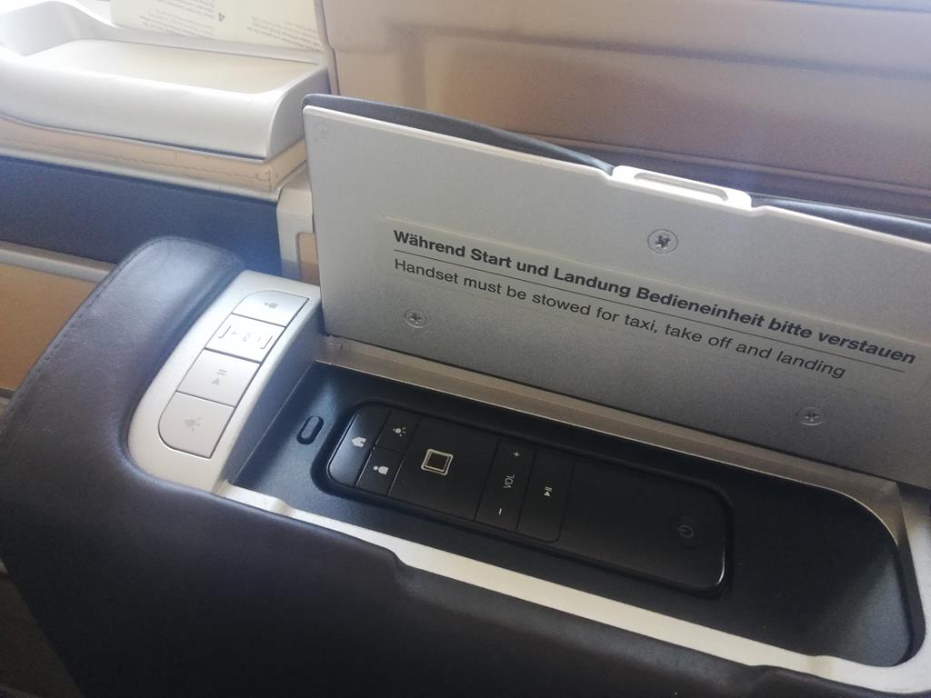 Die Fernbedienung für den Fernseher ist ebenfalls unter einer Abdeckung, auch hier sind einige gängige Funktionen per fest installierten Knöpfen aktivierbar. Im Jumbo Jet können die Fensterblenden elektronisch gesteuert werden, hier kommen zunächst Jalousien und danach die Sonnenblenden.