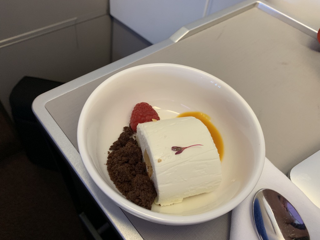 Nachdem ich meinen Salat gegessen hatte, wurde mir mein Hauptgang serviert. Das Lamm hat gut geschmeckt, allerdings war das Stück Fleisch, welches in der Schale lag recht überschaubar, wie auch die Flugbegleiterin angemerkt hat. Daher fragte man mich wenige Minuten später, ob ich nicht noch ein zweites möchte.
