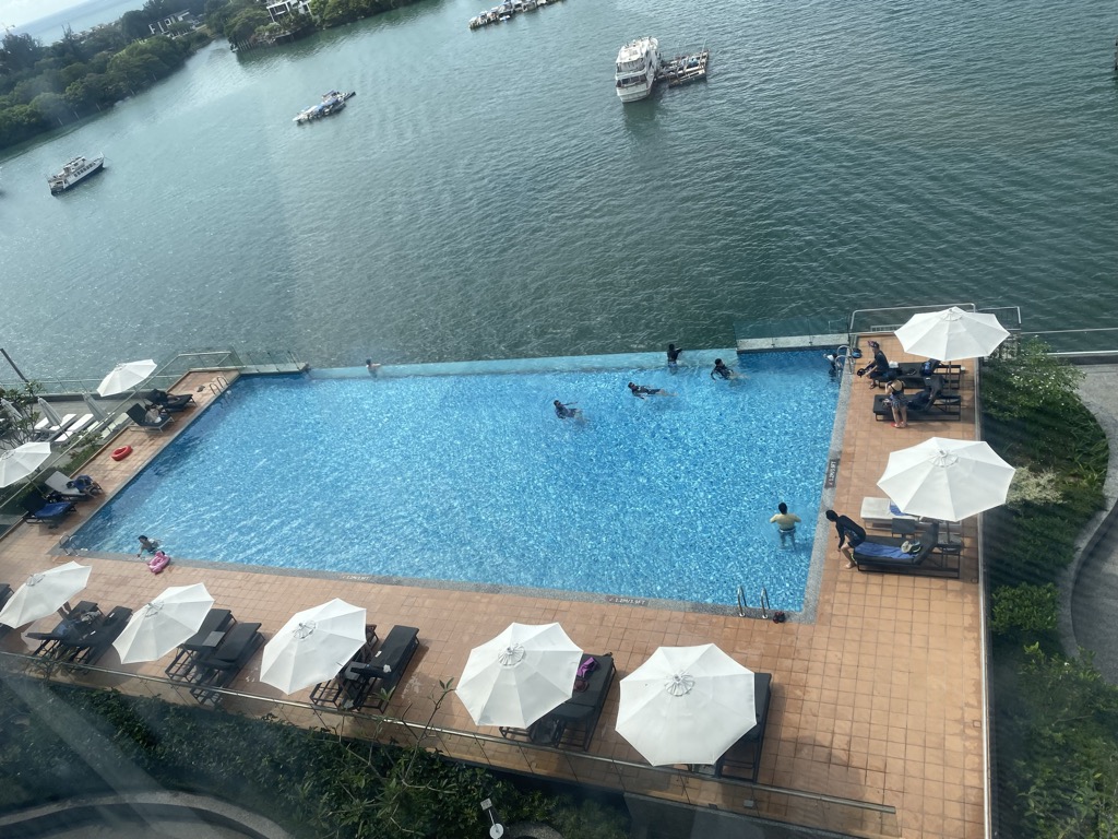 Der Pool des Hotels war ein Überlaufpool mit einer ordentlichen Größe. Zu keiner Zeit empfanden wir den Pool als zu voll. Um den Pool herum standen einige Liegen und Sonnenschirme. Von hier aus hatte man einen fantastischen Blick aufs Meer.