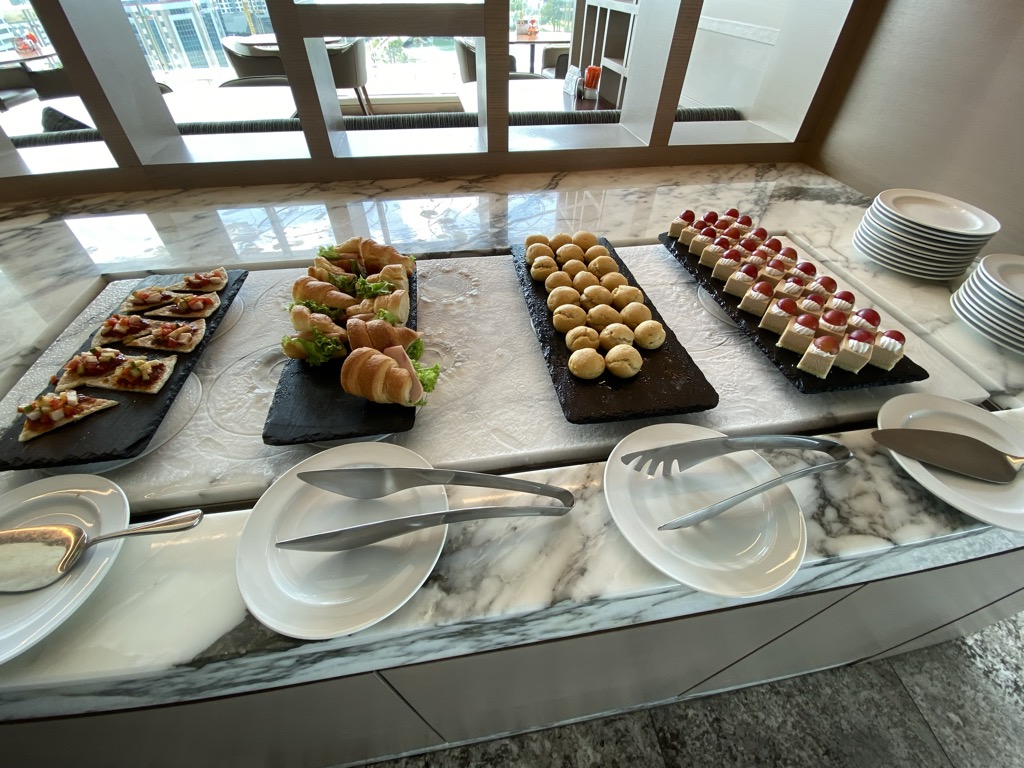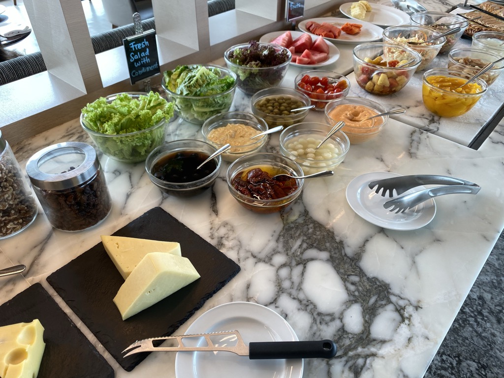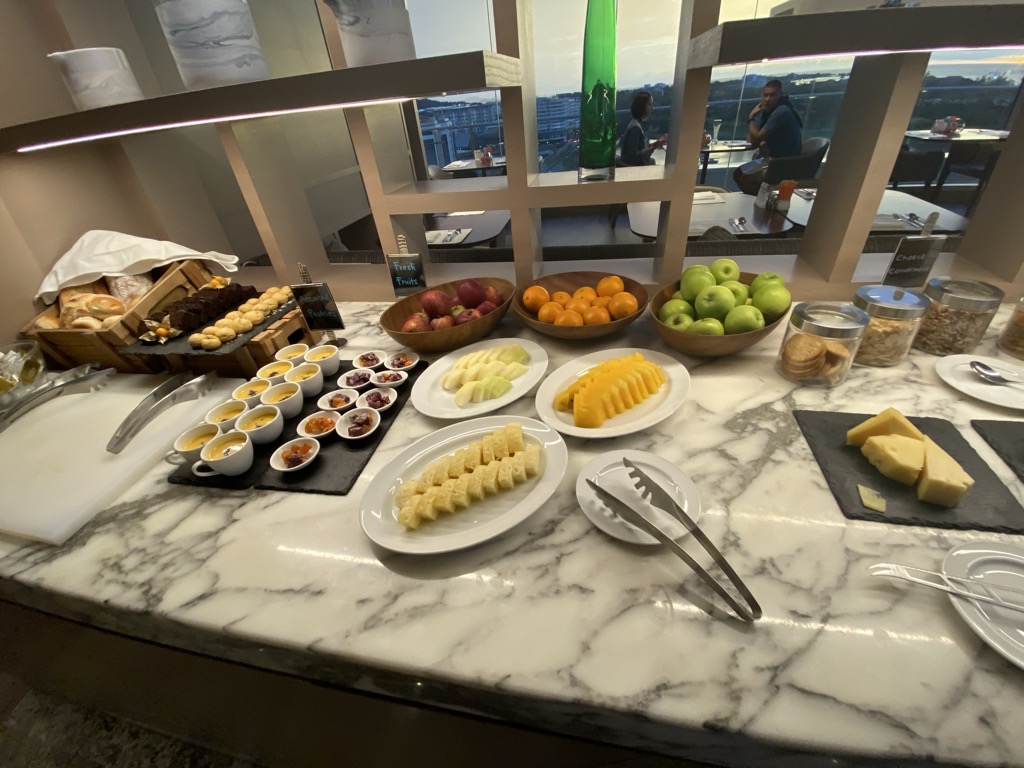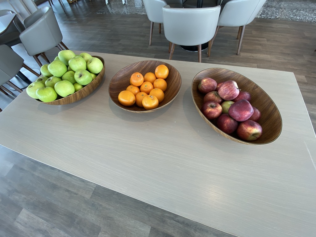 Zu verschiedenen Zeiten des Tages gab es auch noch Speisen. Hierbei war die Beschreibung „Snacks“ wirklich untertrieben. Das Essen war umfangreich, frisch und in ausreichender Menge vorhanden. Das Personal in der Lounge war sehr freundlich und benutztes Geschirr wurde schnell abgeräumt.