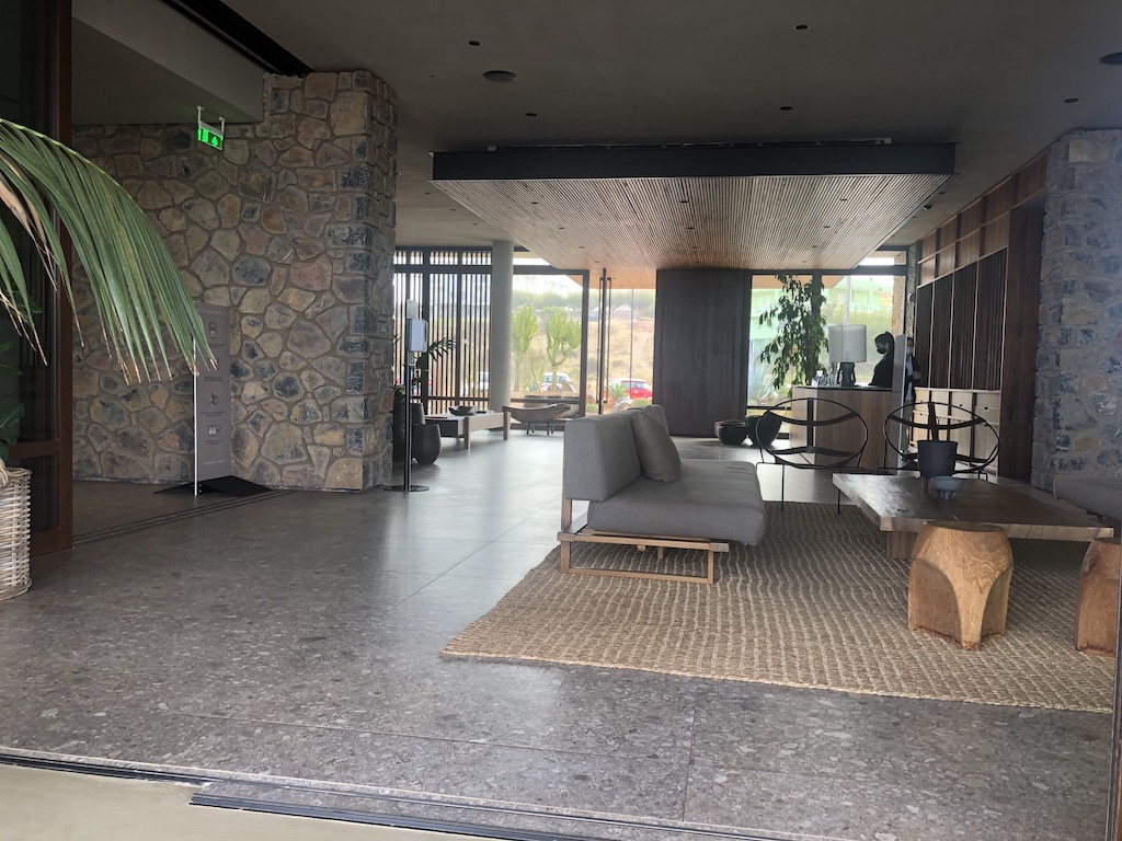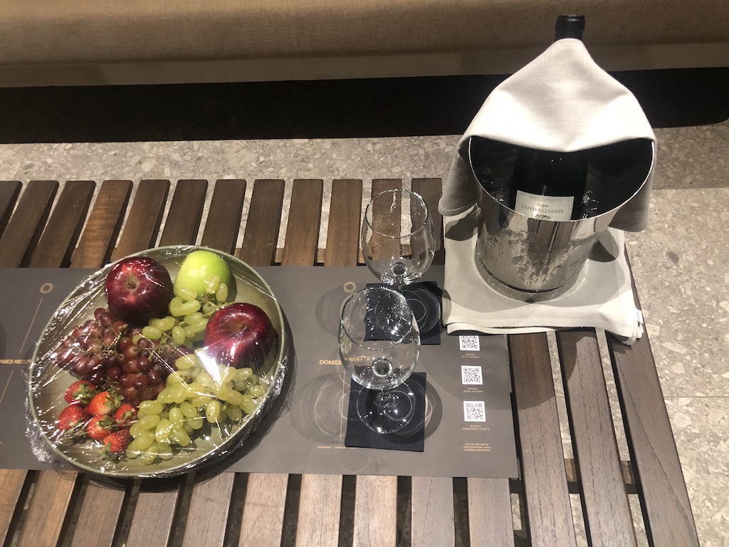 Etwas am Rand der zweitgrößten Stadt auf Kreta liegt das Domes Zeen Resort von Marriott. Die Zufahrt war gar nicht ausgeschildert, eine kleine enge Gasse führte von der Hauptstraße zur Anlage. Von weitem konnte man das kleine Haus sehen, in dem die Rezeption und Lobby sind. Der Rest des Resorts verteilt sich an einem Hang in Richtung Küste. Das Umfeld der Anlage ist nicht gerade sehenswert und etwas verkommen. Wir sind mit dem Mietwagen vorgefahren und beim Betreten der Lobby in eine eigene kleine Welt abgetaucht.