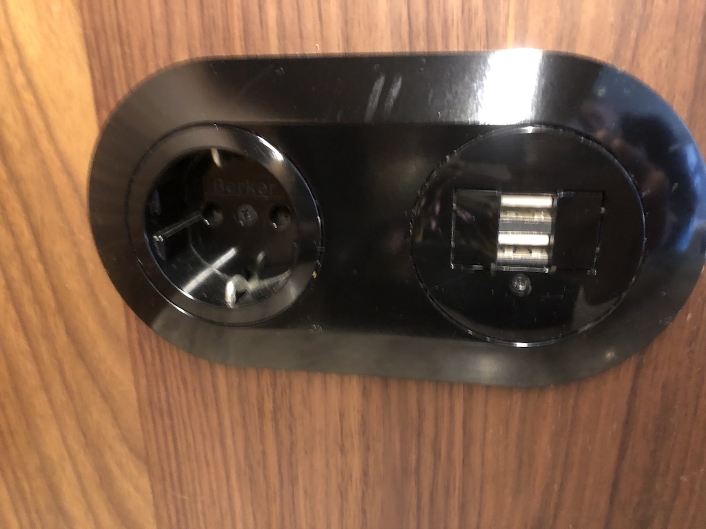 Das Zimmer ist schlicht, aber geschmackvoll ausgestattet. Der Raum war nicht mit Möbeln überladen, es kommt jedoch viel Beton zum Vorschein. Die Beleuchtung ist zum Teil indirekt und stellenweise dimmbar, im Badezimmer waren Oberlichter angebracht. Es gibt ausreichend Steckdosen und USB-Anschlüsse. Selbst im Kleiderschrank waren Stromanschlüsse vorhanden. Im Fernseher sind mehrere deutsche Sender installiert, zum Zeitpunkt unseres Aufenthaltes kamen die meisten Gäste aus dem deutschsprachigen Raum.