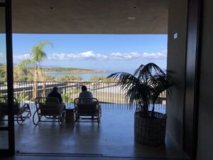 Zur Begrüßung standen ein Obstkorb und eine Flasche Weißwein bereit. Diesen gab es auch im Restaurant für 52€ in der Weinkarte. Eines der Schlafzimmer hatte dank der Panorama-Fenster eine herrliche Aussicht. Leider waren neben den Betten keine Konsolen als Ablage, auch sonst wäre es mit zwei großen Koffern in dem Zimmer etwas eng geworden. Für die Koffer und Kleidung haben wir einfach das zweite Schlafzimmer genutzt und so die Räumlichkeiten voll ausgekostet.