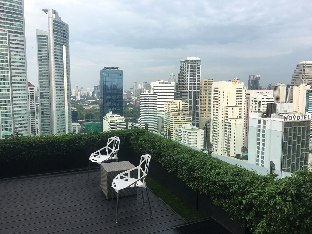 Das hat den Nachteil, dass man das Hotel nicht schnell fußläufig von einer BTS-Station erreichen kann (ca. 15 Minuten). Gerade mit Gepäck könnte das schon nervig sein, da die Bürgersteige nicht immer so frei sind, dass man dort schnell gehen kann. Außer man – und damit sind wir bei einem Vorteil der Lage – kann bei gutem Wetter und angenehmen Temperaturen durch den Queen’s Park „abkürzen“. Dann ist man von der BTS Station Phrom Phong in ca. 5 Minuten am Hotel (Hintereingang). Es gibt auch ein Hotelshuttle zur Phrom Phong Station, das habe ich jedoch nie in Anspruch genommen.