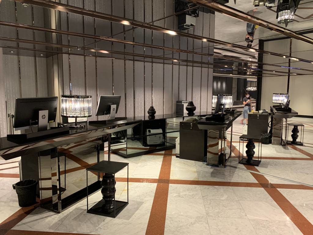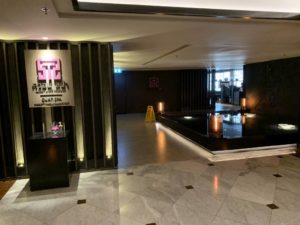 Zum Check-Out schnappten wir uns Gepäck und fuhren runter in die südliche Lounge. Dort konnten wir ohne Wartezeit die Rechnung begleichen und unsere Schlüsselkarten abgeben. Als nette Geste wurde uns währenddessen sogar noch ein Kaffee angeboten. Wir mussten allerdings schnell weiter. Freundlich verabschiedet gingen wir daher wieder Richtung Fahrstuhl und bestellten uns in der Lobby ein Grab.