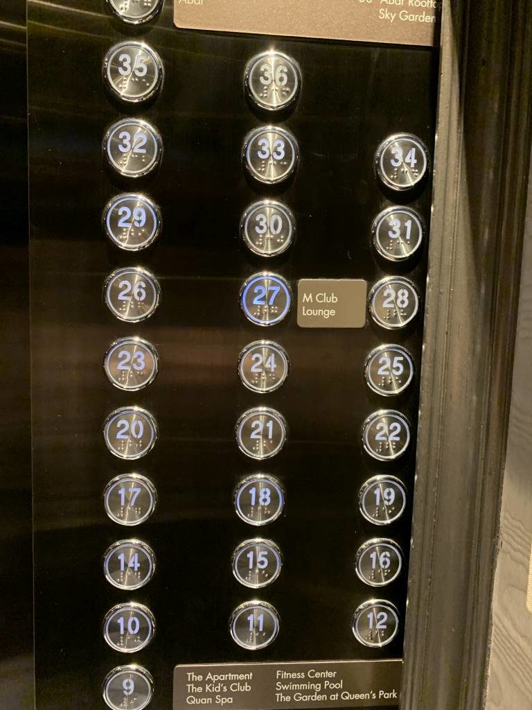 Die M Club Suite hatten wir auch bei unserem Besuch in 2019. Damals im „Soutj Tower“, waren wir diesmal im nördlichen Gebäude in der Suite Nummer 3239 untergebracht. Wie die Nummer schon verrät, lag sie auf der 32. Etage. Hauptsächlich konnten wir aus den Fenstern auf den Pool schauen. Das war seiner Zeit etwas besser, da wir den Queens Park direkt vor Kopf hatten.