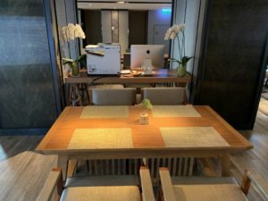Die Lounge im Nordturm wirkt etwas kleiner oder ist einfach nur verwinkelter. Wie auch die Lounge im Südturm, hat sie eine Terrasse, was für uns einer der ausschlaggebenden Faktoren für das Marriott Marquis ist. In der Lounge im Nordturm sind auch Kinder zugelassen. Wir nutzen die Lounge lediglich einmal beim Frühstück. Gefühlt waren in der Nord-Lounge mehr asiatische Gäste und in der Süd-Lounge mehr Europäer, allen voran Deutsche, Österreicher und Schweizer.