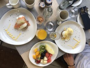 Der Check-In verlief schnell. Während die Ausweise und der gültige Impfstatus überprüft wurden, erhielten wir bereits ein Willkommensgetränk und Nüsse. Schnell hielten wir unsere Zimmerkarten in den Händen und wurden persönlich zum Zimmer geleitet. Zuvor erhielten wir noch einige Informationen über die verschiedenen Einrichtungen des Hotels und die Vorteile unserer LEVEL Buchung.