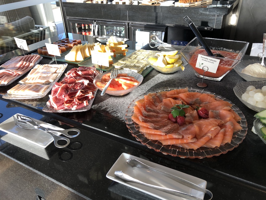 In der Lounge selbst könnte man zu der Zeit den schönen Sonnenuntergang genießen, man versucht aber offensichtlich Personal einzusparen. Immerhin wird die Lounge wieder für das Frühstück genutzt, welches etwas exklusiver als im Hauptrestaurant ist. Die Präsentation war sehr gelungen, es gab auch einige a la Carte Gerichte.