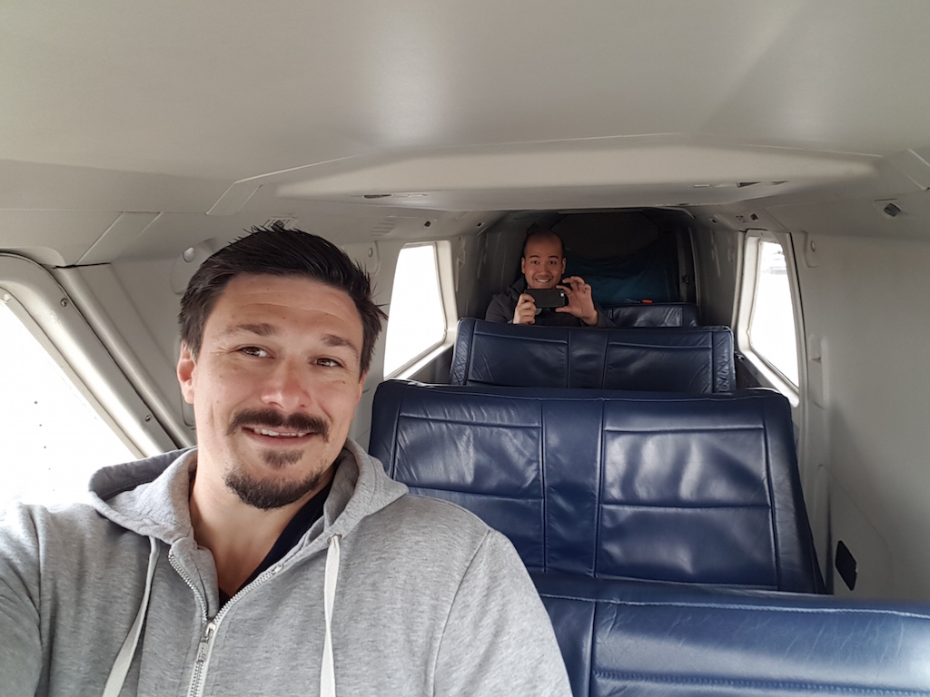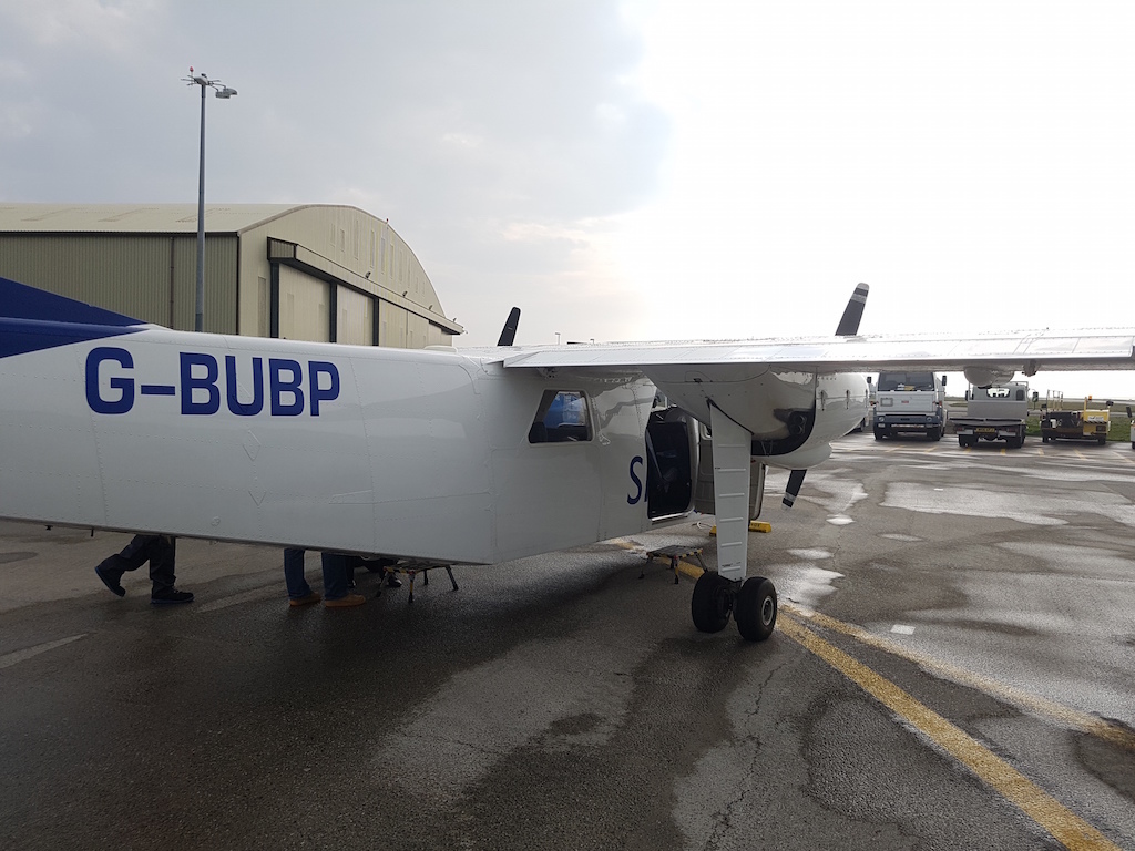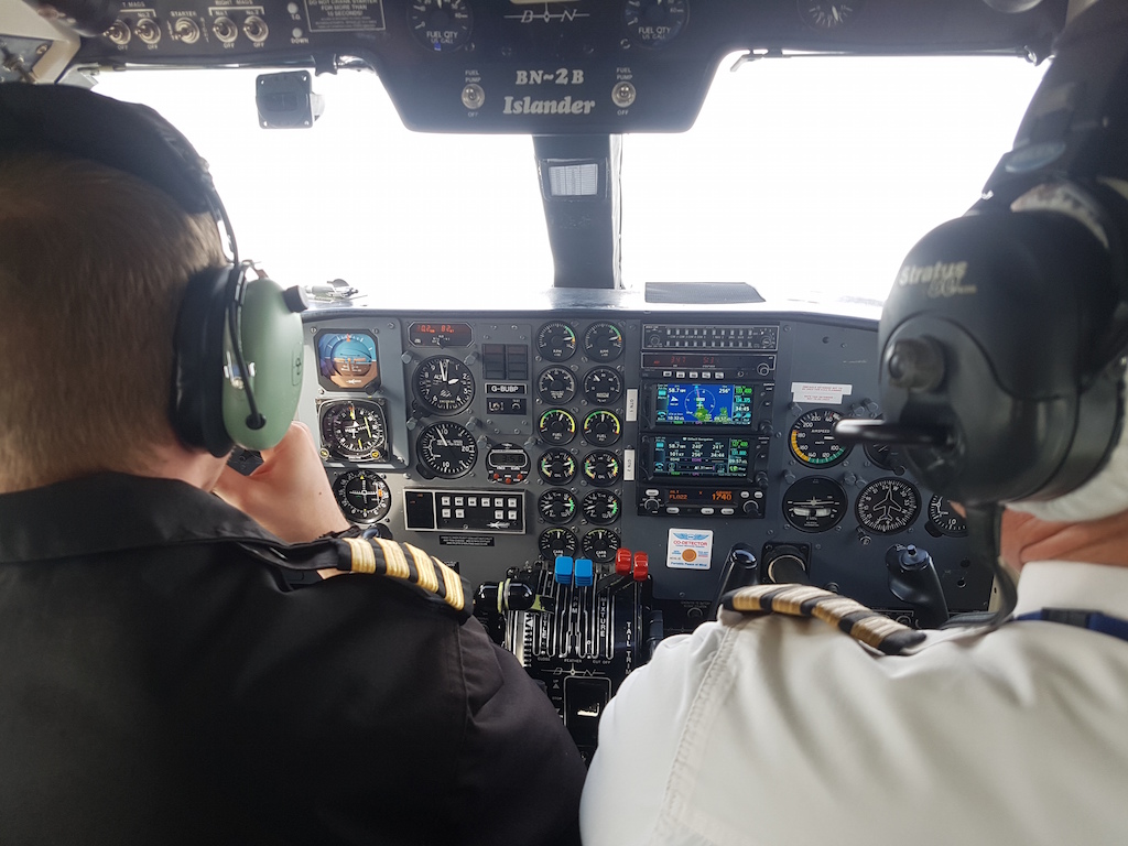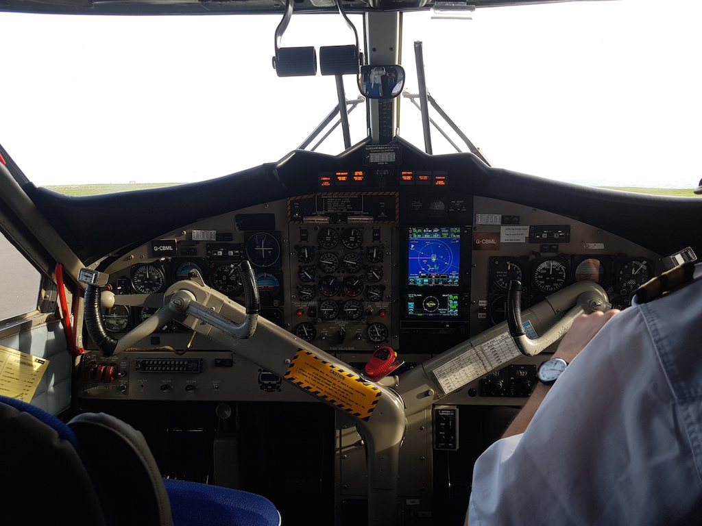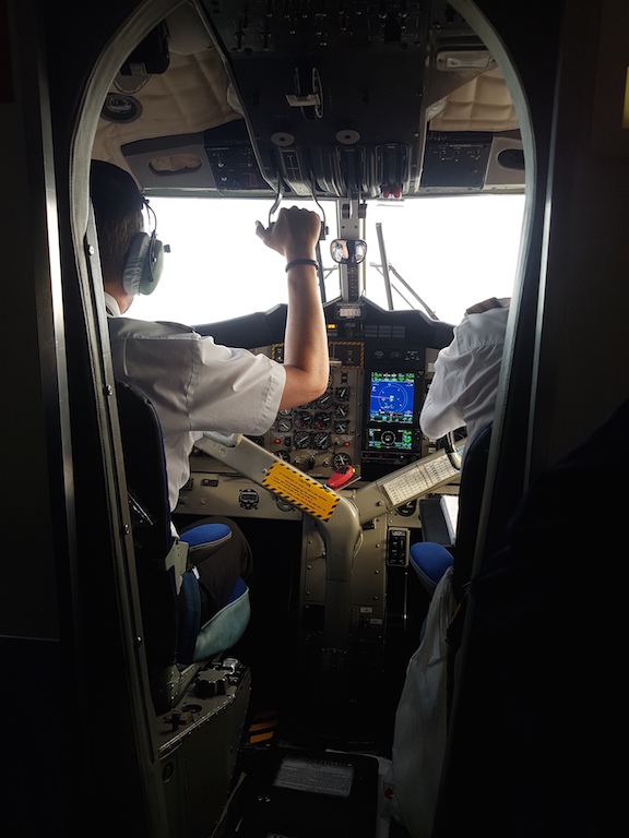 Wir hatten auf dem Hinflug das Glück mit der Britten Nomander zu fliegen und dabei die einzigen Gäste an Bord zu sein. Das war sozusagen unser Privatflugzeug.