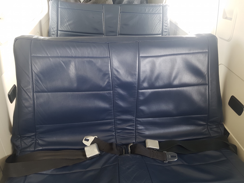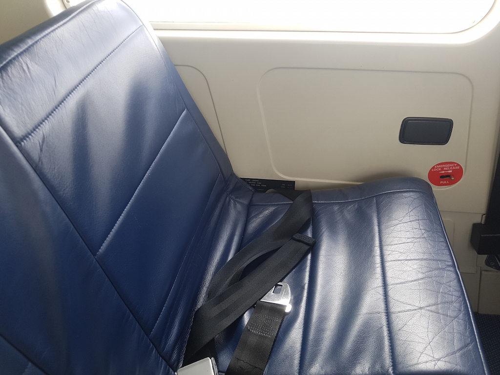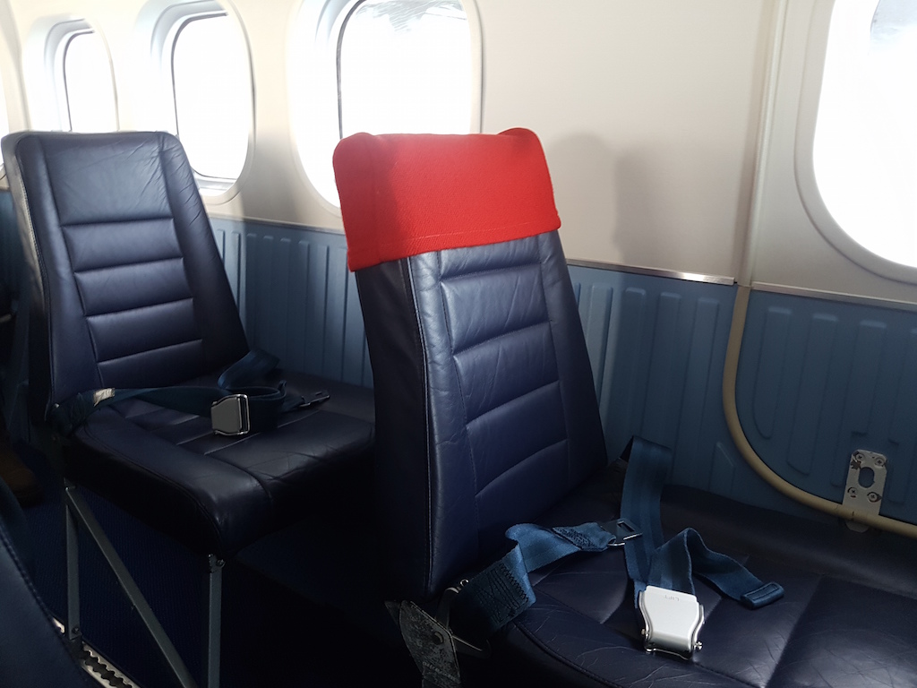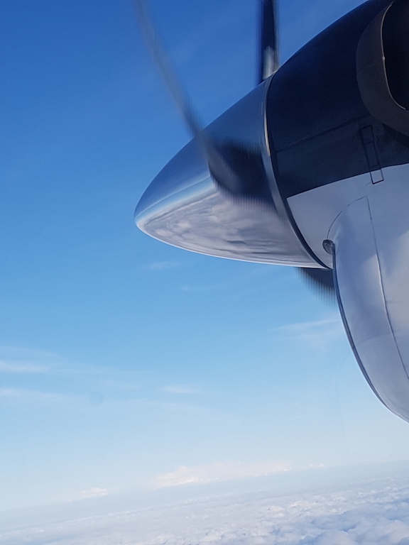 Unser Flug für den Rückflug war ganz gut gebucht.Insgesamt waren 11, der 17 Plätze belegt. Diesmal gab es keine feste Sitzplazuteilung. Ich habe mich in die dritte Reihe gesetzt. Von hier hatte ich einen klasse Blick in das offene Cockpit und auch aus dem Fenster auf die Triebwerke.