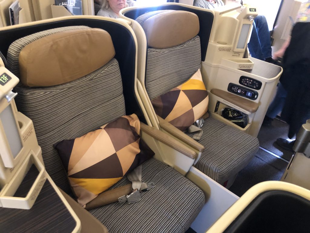 Das Produkt unterscheidet sich bei Etihad etwas nach Flugzeugtyp, auf dem A380 gibt es beispielsweise eine Bar und im Dreamliner findet man die neuste Generation des Business Class Sitzes.