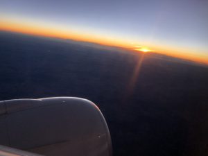 Die Gespräche mit meinem Sitznachbarn und der Flugbegleiterin machten den Flug sehr kurzweilig. Nach einem Film und etwas Schlaf ging draußen schon die Sonne auf und es waren lediglich noch eineinhalb Stunden bis zur Landung. Ich bestellte ein Steak-Sandwich und etwas Obst. Es schmeckte entgegen meiner Erwartung gar nicht fad oder trocken, ganz im Gegenteil.