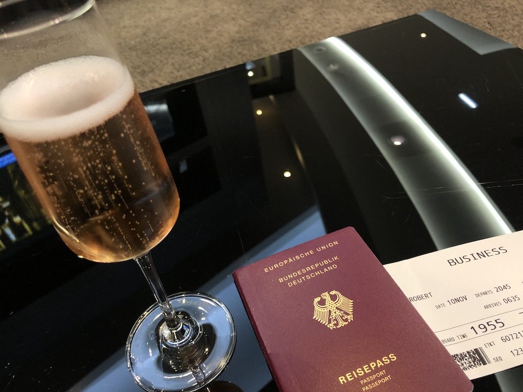 Der Großteil der Passagiere war bereits an Bord, die Flugbegleiter nutzten die Gelegenheit um den Aperitif und Menüwünsche abzufragen. Das finde ich auf kurzen Nachtflügen sehr wichtig, damit nach dem Start der Service schnell durchgeführt werden kann. Durch das gute Loungeangebot und die späte Stunde gab es ohnehin nicht viele Gäste die nach dem Start essen wollten.