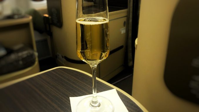 Es war noch etwas Zeit bis sich die Maschine in Bewegung setzte, die Crew schenkte Champagner nach, der Aperitif wurde auch schon abgefragt. Speisekarten und Amenity Kit waren auch diesmal am Sitz, manche Airlines übergeben diese persönlich. Auch auf der langen Strecke nach Sydney gab es leider keine Schlafanzüge oder Slipper.