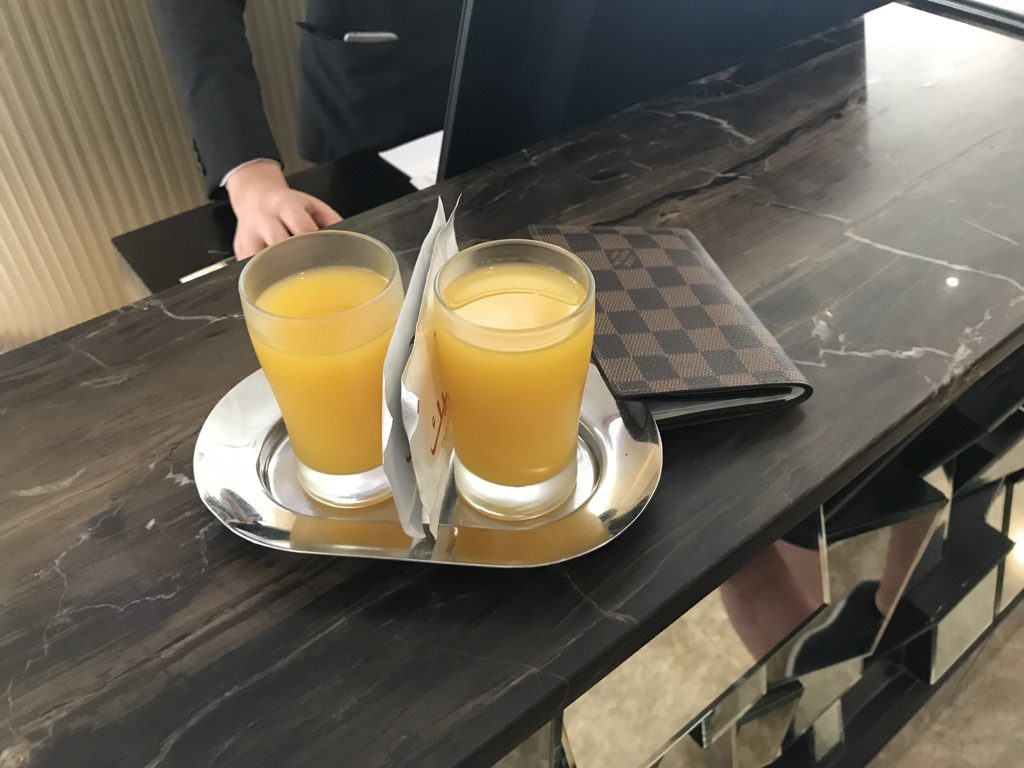 Zum Abschluss des Check-In Vorganges wurde uns frischer Saft mit Erfrischungstüchern gereicht. Diese Geste schätzen wir in Hotels sehr, so fühlt man sich direkt willkommen.