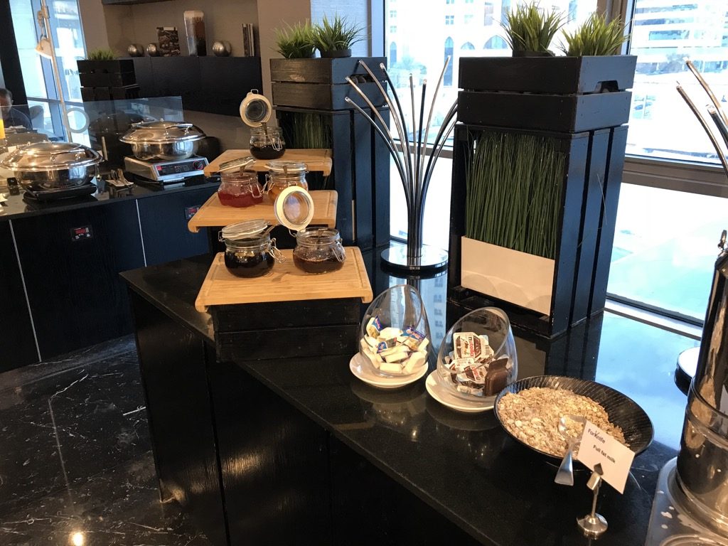 Das Mövenpick West Bay Doha verfügte auch noch über eine Executive Lounge, vor welcher ein Schild stand wann welches Angebot vorzufinden ist. Durch unser Zimmer hätten wir Zugang gehabt, aber leider haben wir keines der Angebote zu den angegebenen Zeiten vorgefunden.