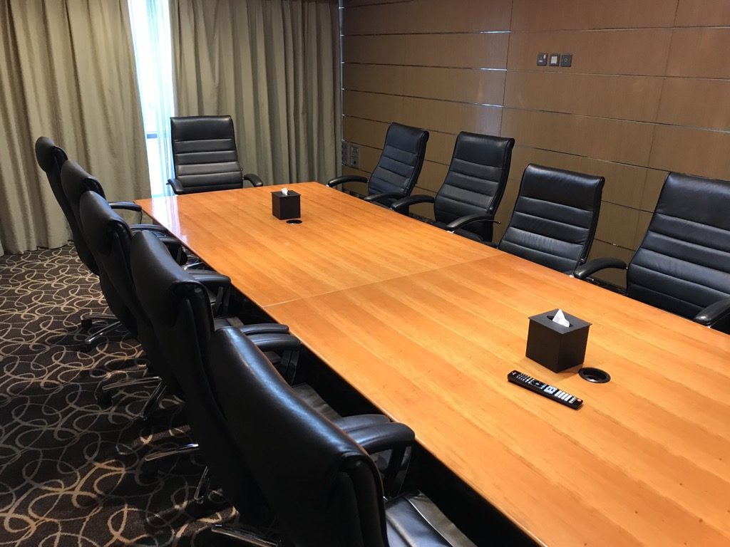 Vor der Lounge war noch ein Aufenthaltsbereich, der vor allem zur Bewirtung der Konferenzraumnutzer diente. Das Hotel verfügte über mehrere verschieden große Konferenzräume. Da gerade eine Veranstaltung stattgefunden hat, konnten wir nur einen kleinen Konferenzraum besichtigen.