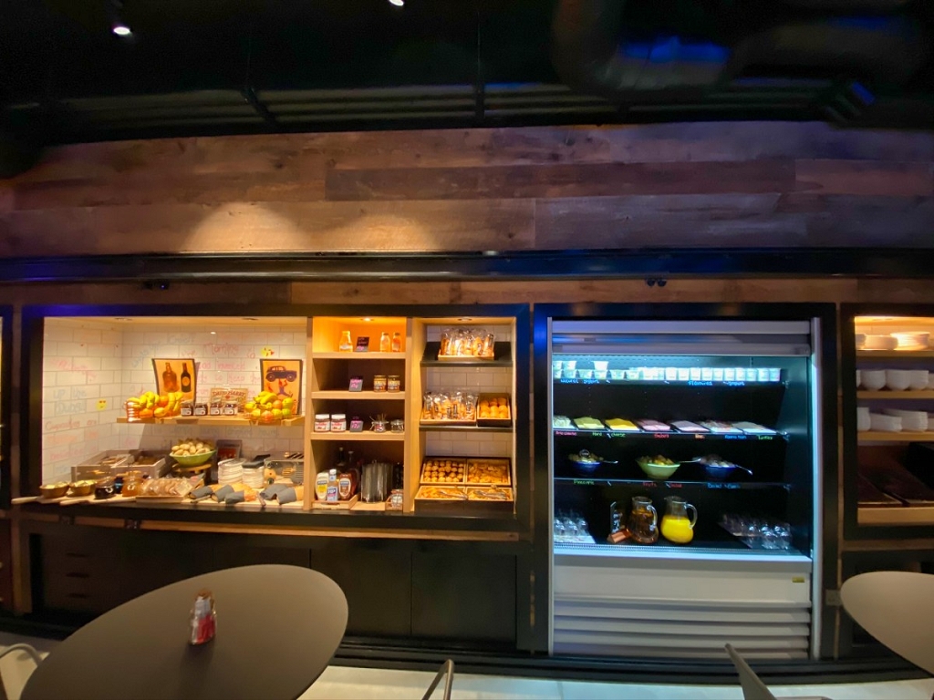 In der Lounge gibt es u.a. Kühlschränke mit Sandwiches und Getränken (zum Kauf), einen Kickertisch und Schließfächer, in denen man nach dem Windhundprinzip Gepäck vor oder nach dem Aufenthalt im Hotel gratis einschließen kann.