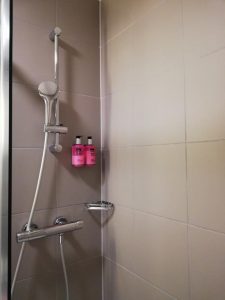 Das Bad selbst ist klein und zweckmäßig, aber damit absolut ausreichend. Amenities wie Duschbad, Shampoo und Conditioner gibt es in Spendern an der Wand.