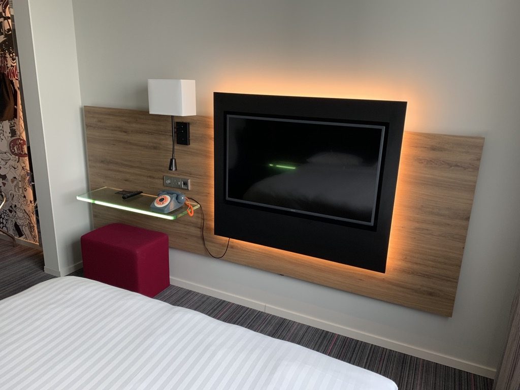 Über das Zimmer selbst gibt es nicht viel zu sagen. Moxy typisch war es recht klein, aber modern eingerichtet. Neben dem Bett gab es noch einen Sessel und den Fernseher an der Wand, womit das Zimmer fast komplett beschreiben war.