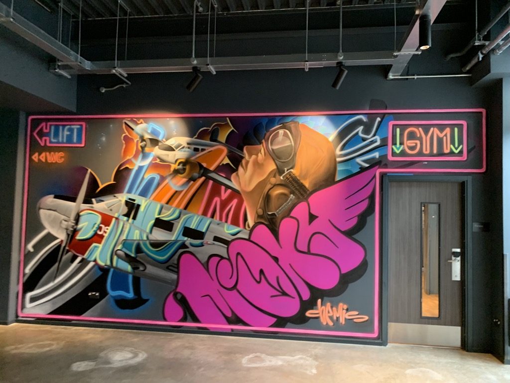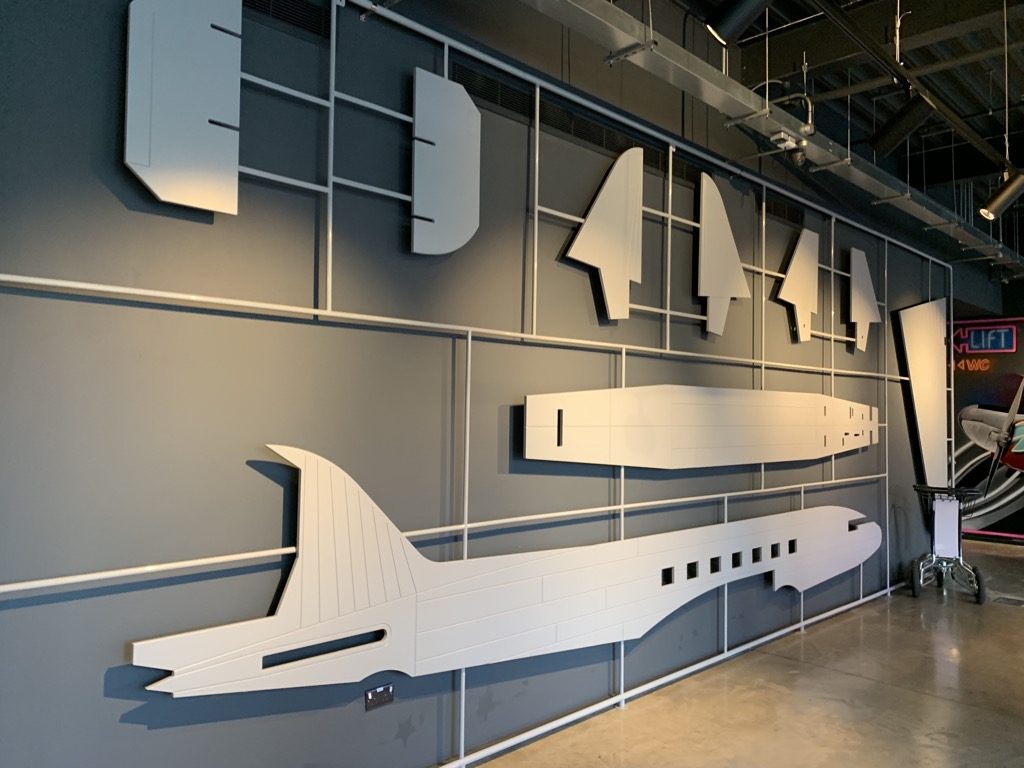 Die Lobby des Moxy London Heathrow ist überraschend groß, allerdings ist es auch eines der größten Moxy, welche ich kenne. Passend als Airport Hotel, hat man die Lobby auch entsprechend dekoriert, was mir sehr gut gefallen hat.