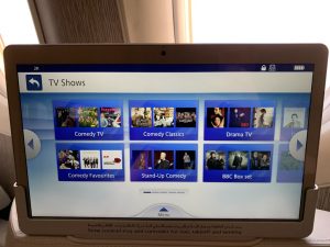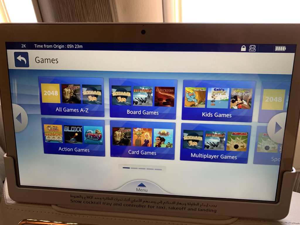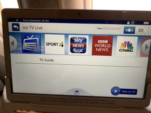 Auf dem riesigen Bildschirm in der neuen Emirates First Class ist das berühmte ICE Entertainment installiert, welches wohl zu dem umfangreichsten Angebot aller Airlines gehört. Dieses IFE gibt es auf allen Emirates Flugzeugen in allen Klassen und bietet tausende von Filmen, Serien, Musik und Spiele.