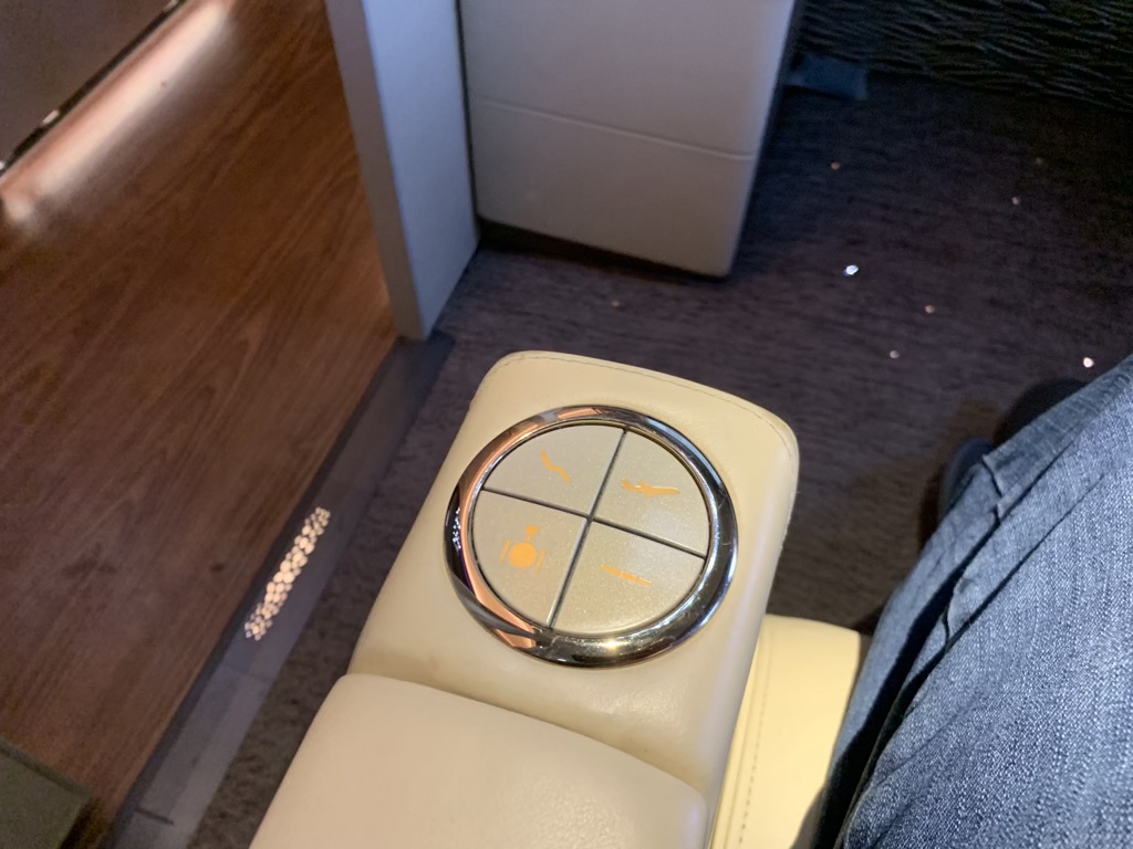 Direkt unter dem Suite Pad fand man eine ganze Reihe von Knöpfen, mit denen man z.B. die Fensterblenden oder auch die Lichter bedienen konnte. Zusätzlich gab es noch am Sitz selbst vier Schnellwahlknöpfe für die Sitzeinstellung, wobei man den Sitz selbst in jede Himmelsrichtung und in fast jede Position bringen konnte, indem man das Suite Pad verwendet hat.
