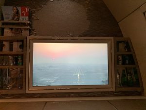 Der Start in Frankfurt war äußerst unspektakulär und auf die Minute pünktlich. Mit der Kamaraaussicht auf dem Bildschirm, der Flugkarte auf dem Suite Pad und der Aussicht aus dem Fenster, fühlte ich mich in der Suite direkt pudelwohl.