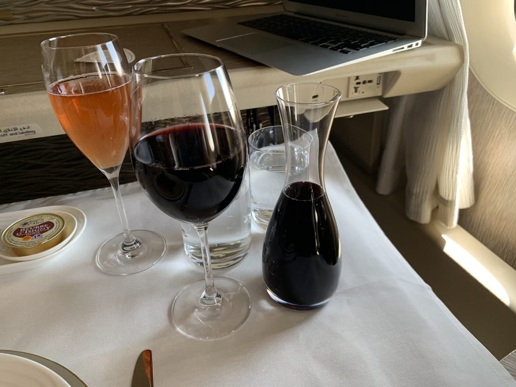 Der Service in der neuen Emirates First Class war mit dem in der alten Emirates First Class identisch. Allerdings war ich auf diesem Flug der einzige Passagier in der First Class, sodass sich zwei Flugbegleiter und der Purser mehr oder weniger nur um mich kümmern mussten durften. Dadurch war der Service natürlich sehr aufmerksam und auch schnell.