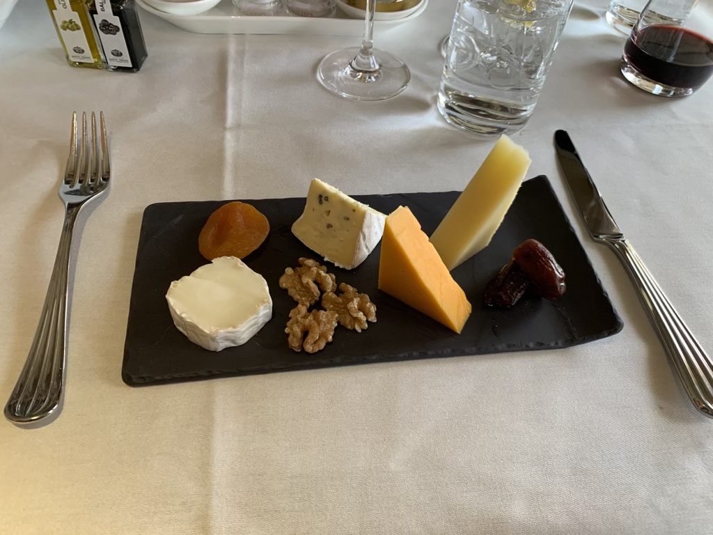 Zum Abschluss des Essens habe ich mir noch die Käseplatte bestellt, welche schön angerichtet war, allerdings können Käse andere Airlines besser, wenn man hier nur an die Swiss First Class denkt, in welcher die Flugbegleiter manchmal einen Monolog zu jedem Käse halten können.