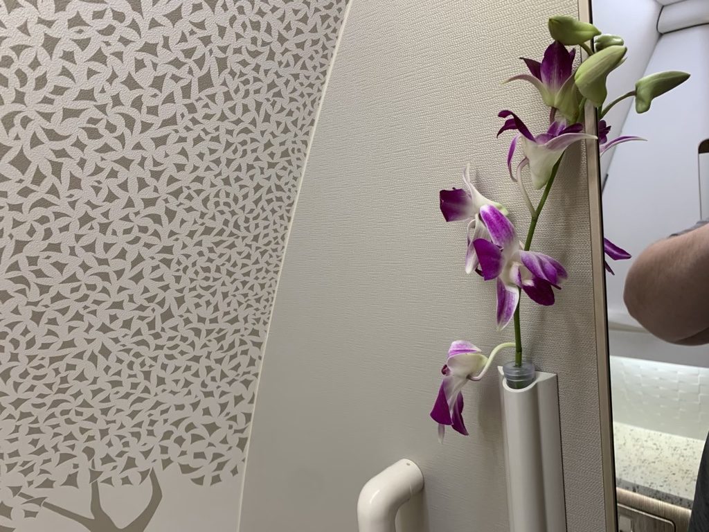 An der Flugzeugtür wurde ich von drei Flugbegleitern schon fast überschwänglich begrüßt und nach einem flüchtigen Blick auf meine Bordkarte hat man mich direkt mit Namen angesprochen und zu meiner Suite 2K begleitet.