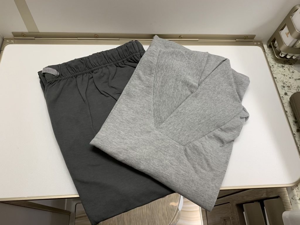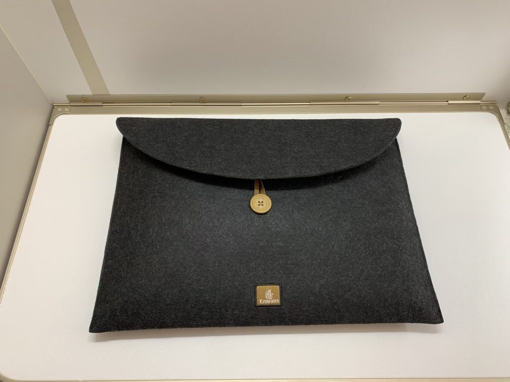 Auch der Emirates First Class Pyjama trug sich ausgesprochen angenehm und war von guter Qualität. Ich selbst trage ihn auch zuhaue immer wieder gerne und die Hülle des Pyjamas eignet sich hervorragend als Laptophülle mit Emirates Logo.