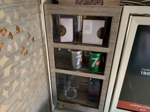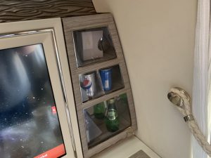 Die Minibar, welche man aus der alten Emirates First Class kennt, gab es auch in der neuen Emirates First Class, allerdings ist dies hier noch mehr als „Show“ zu bezeichnen, als in der alten First Class. Während man oft von Passagieren, welche noch nie in der Emirates First oder Business Class geflogen sind hört „eine Minibar? Was für eine tolle Idee!“, muss ich sagen, dass diese kaum genutzt wird.