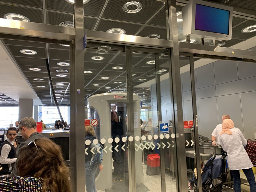 Einer der Nachteile des neueren Terminal 2 in Frankfurt ist, dass man im non Schengen Bereich die Sicherheitskontrollen direkt vor dem Gate und nicht in einem Zentralbereich hat. Entsprechend habe ich mich bei der Durchsage in der Lounge, dass das Boarding nun begonnen hätte auf den Weg zum Gate und entsprechend auch zur Sicherheitskontrolle gemacht.