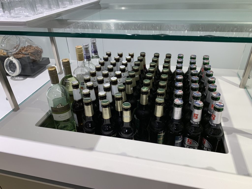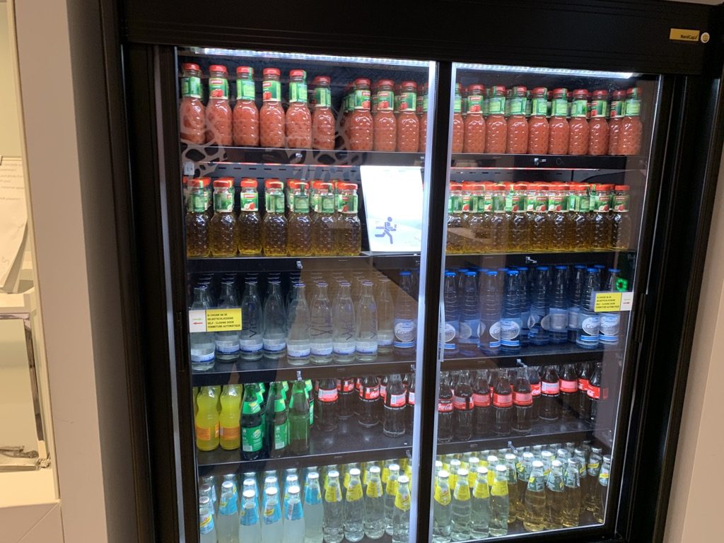 Bei den alkoholfreien Kaltgetränken war die Lounge wiederum gut aufgestellt, so gab es in einem riesigen Kühlschrank kleine Flaschen mit verschiedensten, alkoholfreien Getränken.