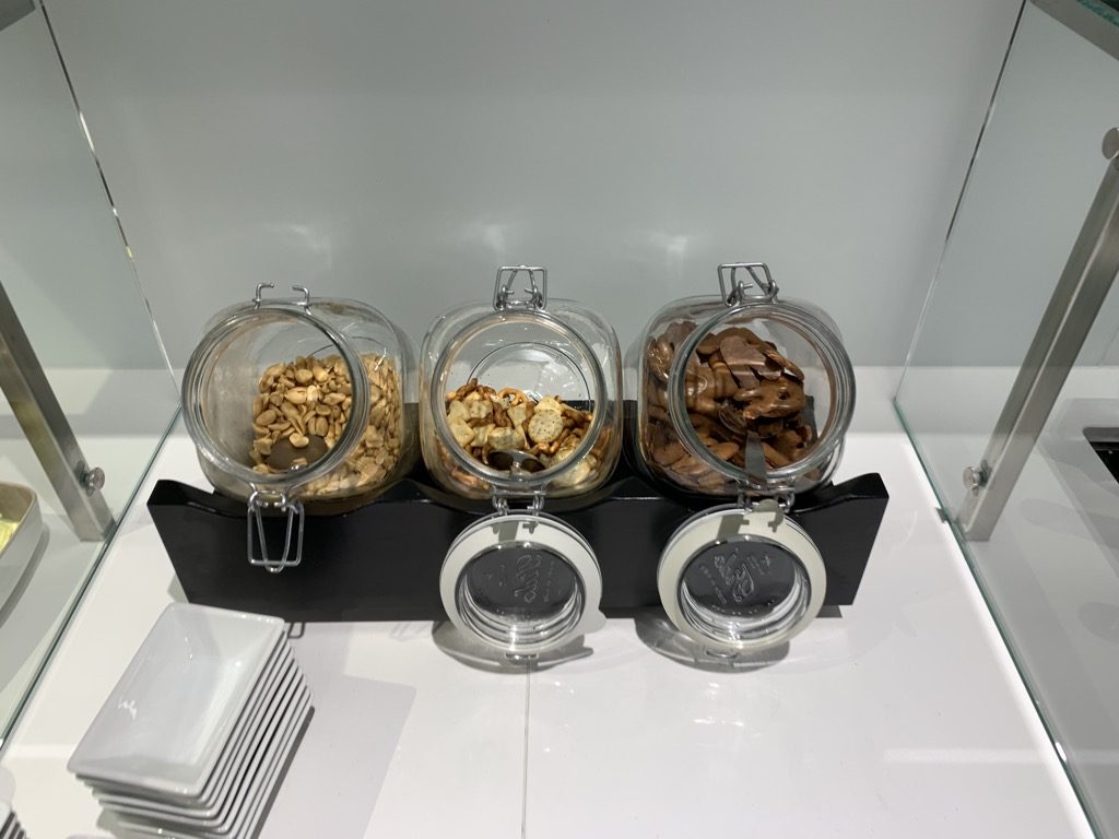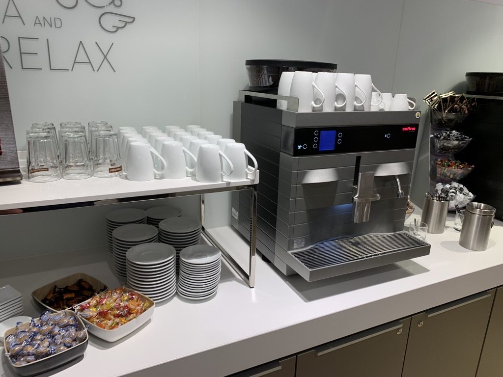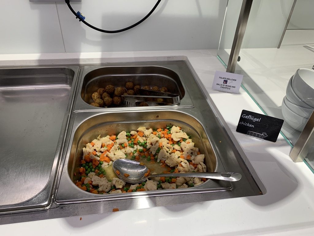 Die Lounge selbst verfügt über mehrere große Buffets, an welchen Essen und Getränke zur Selbstbedienung angeboten werden. Allerdings ist die Auswahl besonders an Speisen recht überschaubar gewesen.
