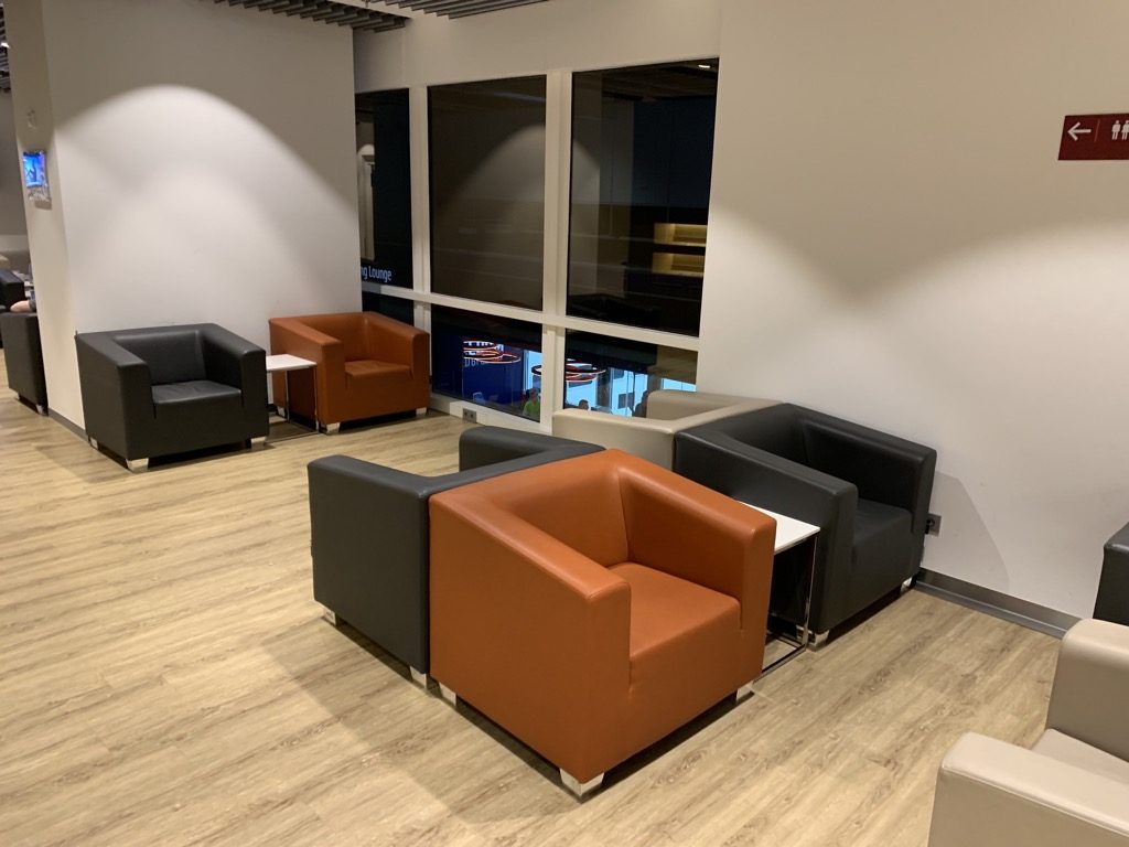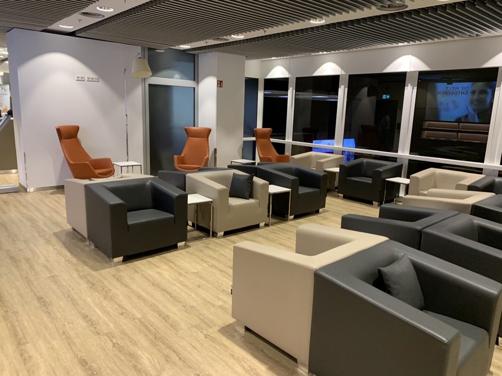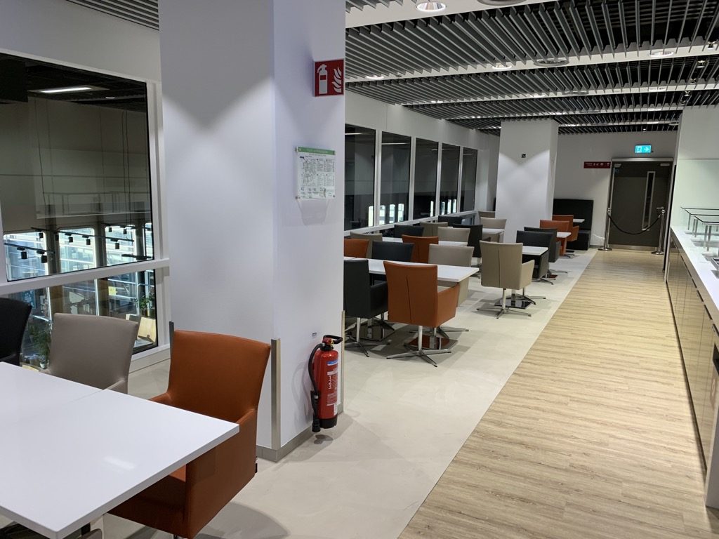 Zentrum der Lounge stellt der Bistrobereich mit Tischen und Stühlen dar. Diese nehmen fast die Hälfte der Lounge ein.