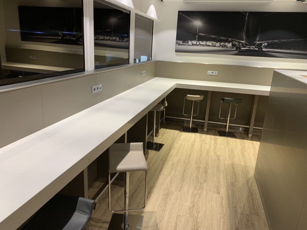 Direkt neben dem Eingang zur Lounge befindet sich ein kleines Business Center mit verschiedenen Work Stations. Leider gab es hier keinen Drucker und an den Hochstühlen kann man meiner Meinung nach nicht wirklich gut arbeiten. Dafür gab es hier jede Menge Steckdosen und wie in der ganzen Lounge schnelles WIFI Internet.