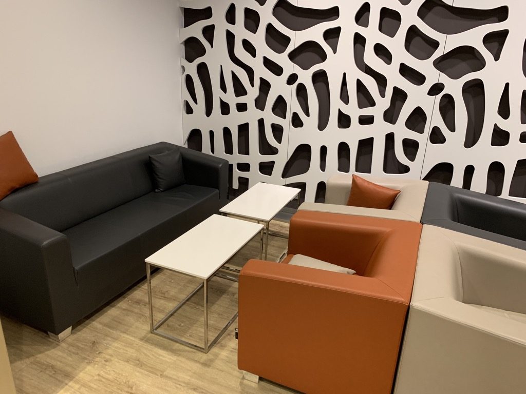 In der Lounge gibt es verschiedene Couches und Sessel in kleinen Sitzgruppen.
