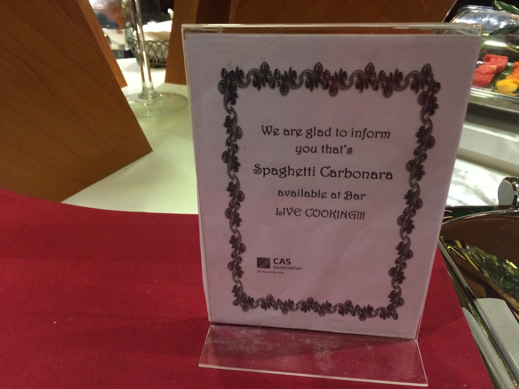 An der Bar kann man eine große Auswahl an Softdrinks, Bier, Wein und Spirituosen beim Barkeeper bestellen. Was ich auch interessant fand war, dass man ein Gericht frisch bestellen konnte. In unserem Fall waren es Spaghetti Carbonara. Auch wenn es auf dem Bild nicht unbedingt so aussieht, diese waren wirklich gut!