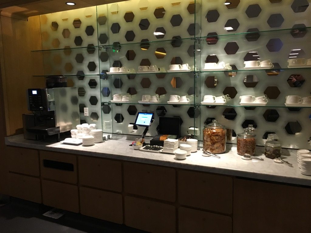 Zentrum des Service in der Qantas First Class Lounge Los Angeles ist sicherlich das Restaurant und die Bar, allerdings findet man in der Lounge auch mehrere self service Buffets für Kaffee, Tee, Wasser, Wein sowie kleine Snacks.