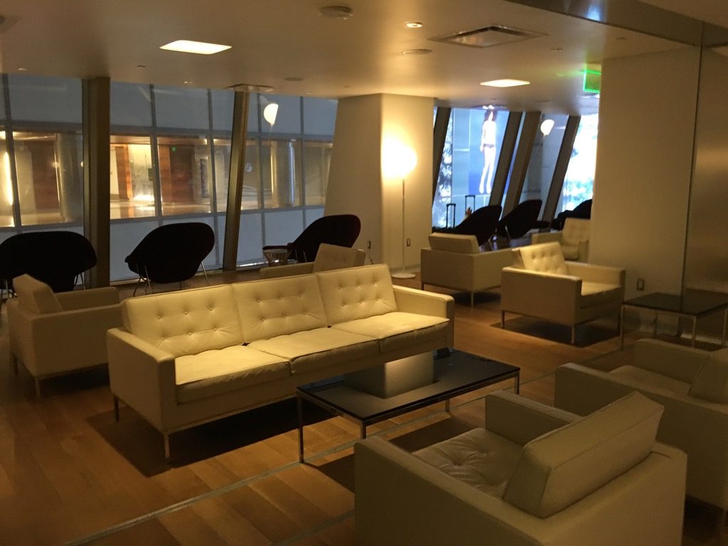 Die Sessel befinden sich an der großen Fensterfront, allerdings hat man von hier nur Ausblick auf einen kleinen Teil des Terminals und eine Wand. Diese fehlende Aussicht ist allerdings auch schon meine größte Kritik an der Qantas First Class Lounge in Los Angeles.