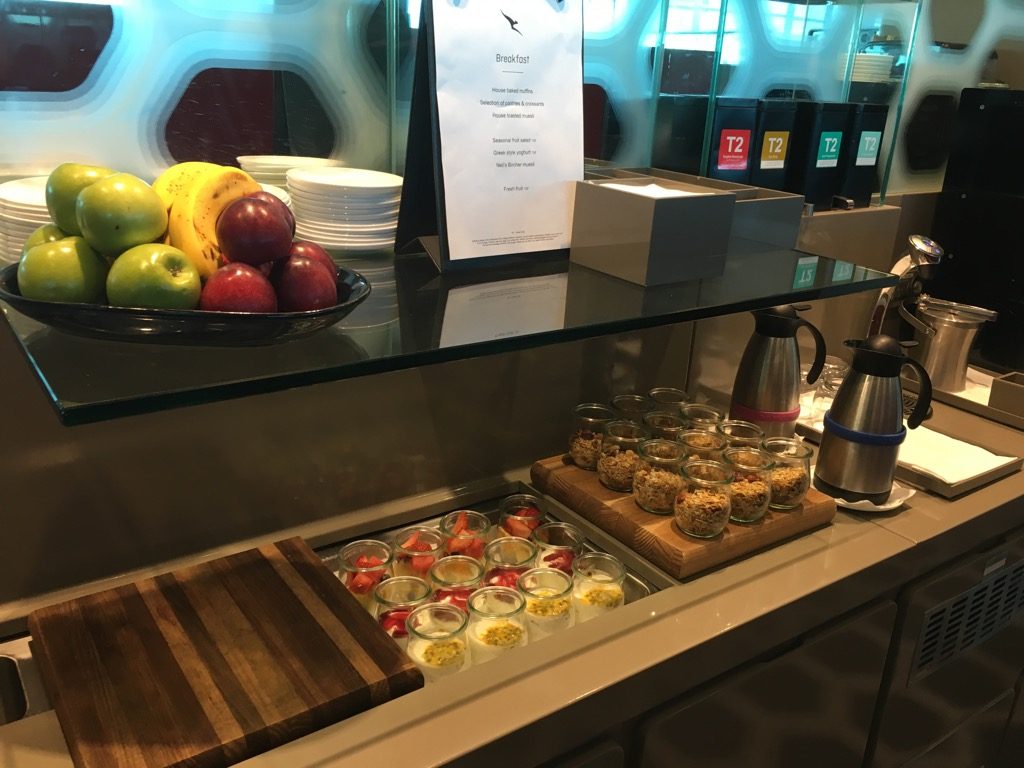 In der Lounge gibt es auch ein kleines Buffet mit Speisen, sowie einem Kühlschrank mit Getränken. Hier können sich die Gäste auch selbst bedienen, allerdings sieht das Service Konzept vor, dass alle Speisen und Getränke serviert werden.