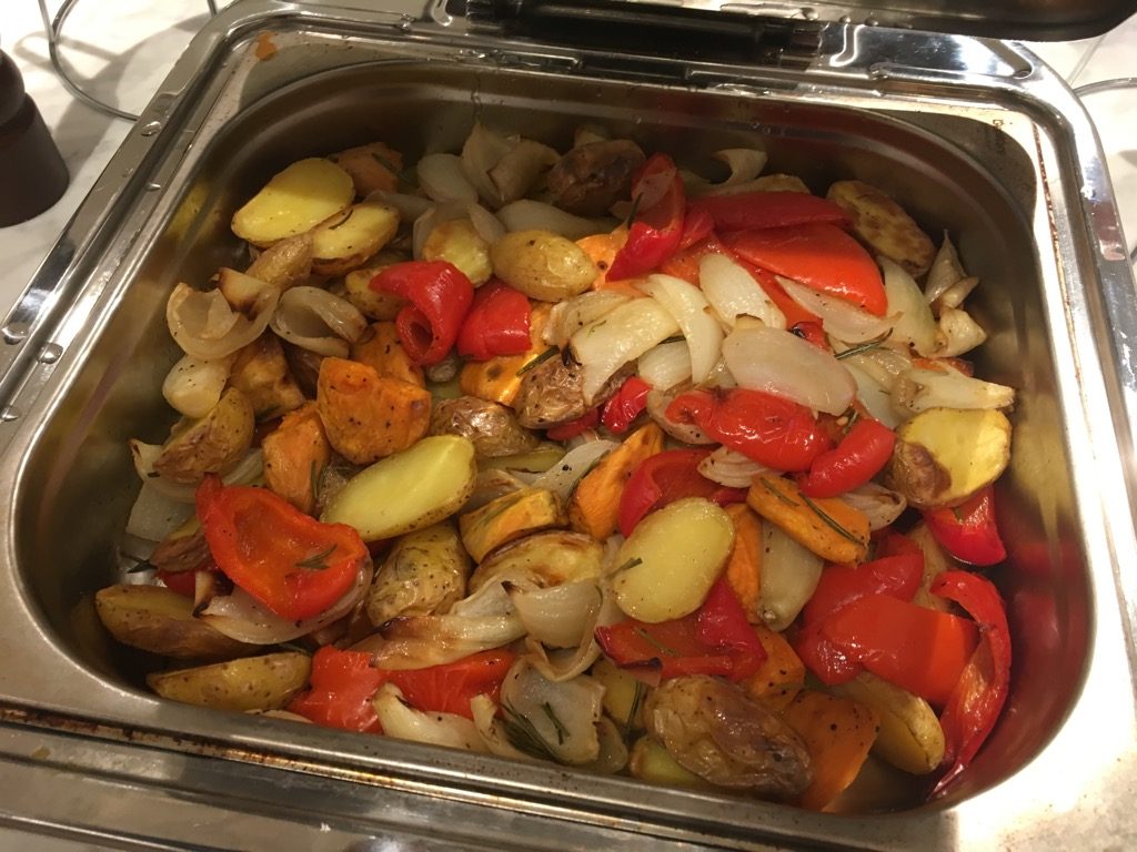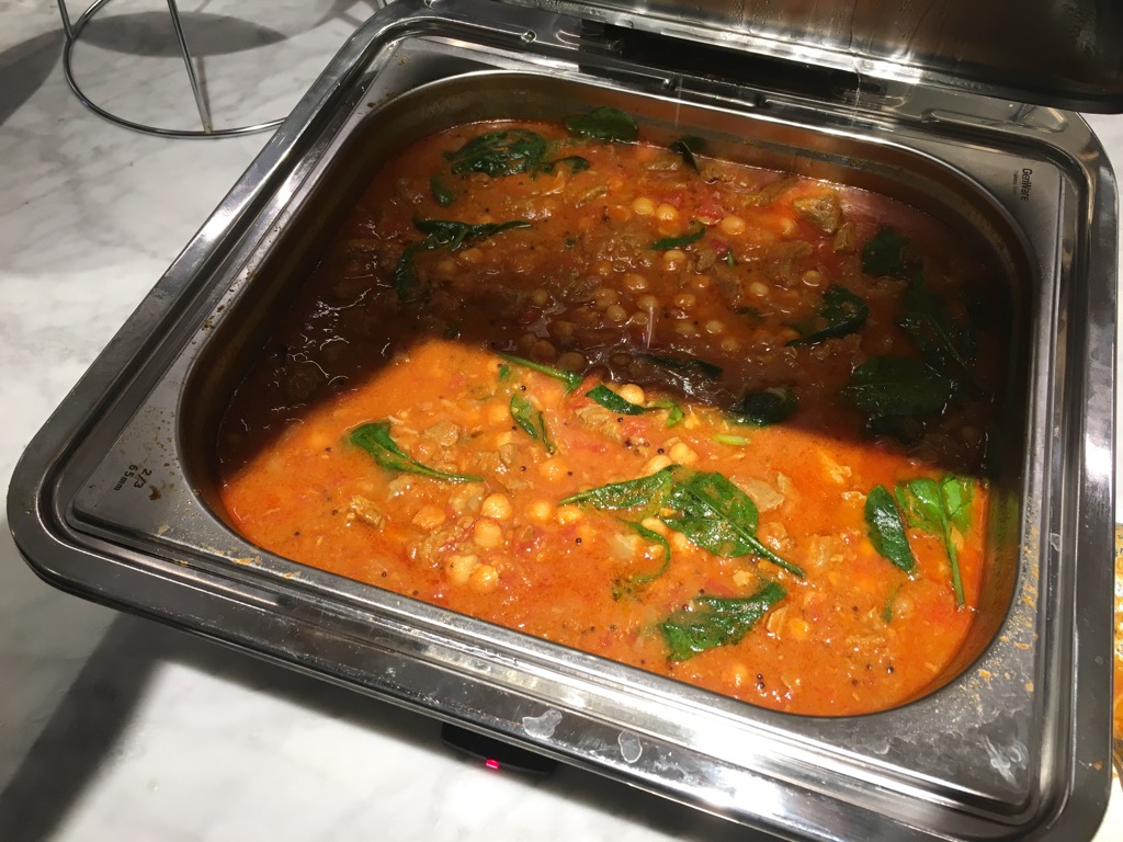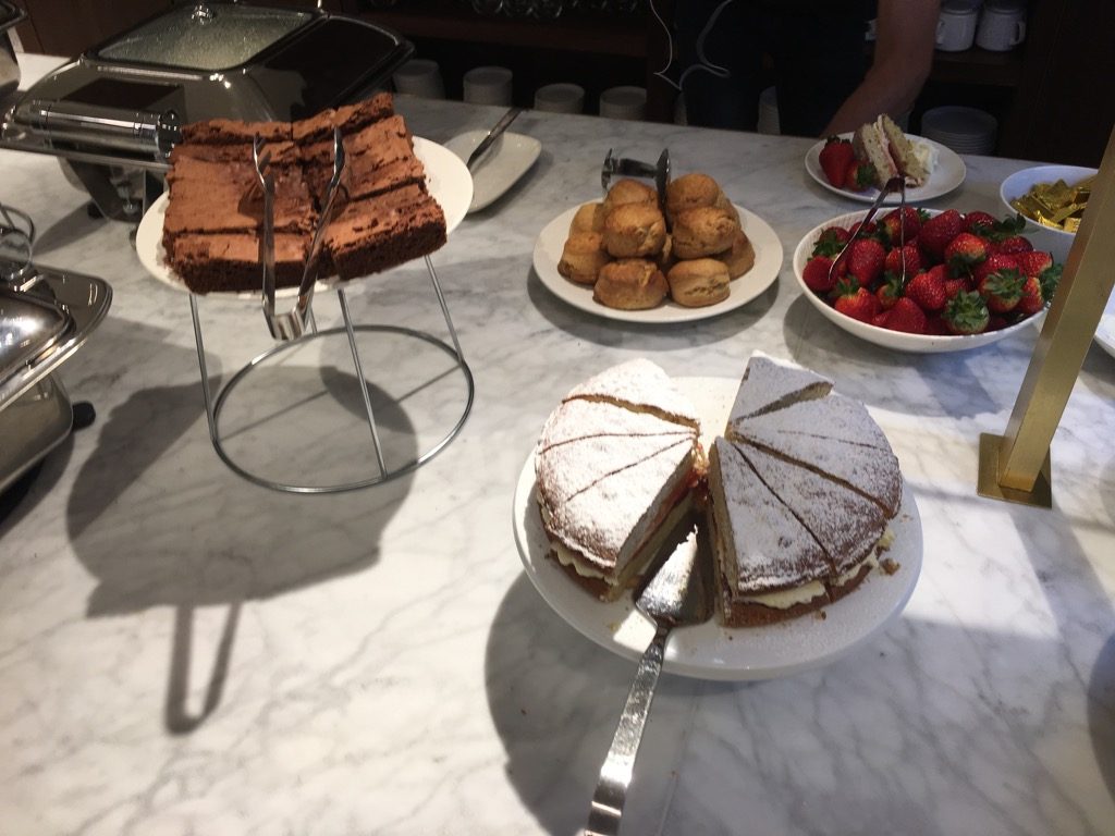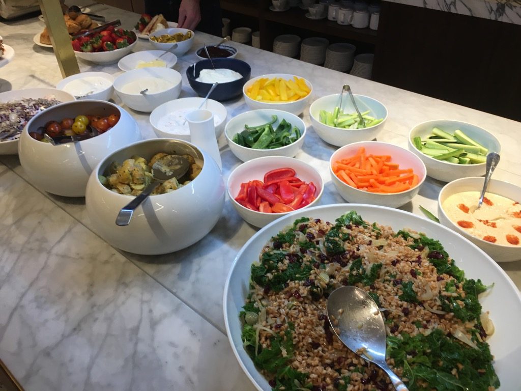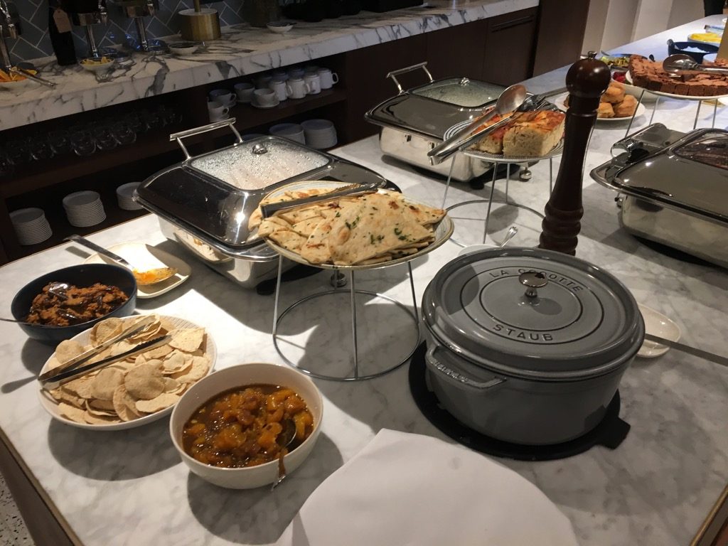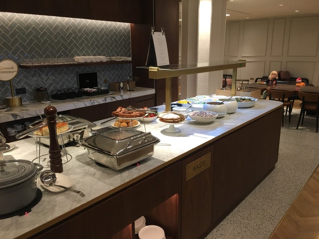 Die Qantas Lounge in London Heathrow verfügt, wie oben schon beschrieben, über ein á la carte Restaurant im Erdgeschoss. Dieses war leider bei meinem Besuch am Vormittag noch nicht geöffnet, weshalb ich es leider nicht testen konnte. Im oberen Stockwerk gab es allerdings ein Buffet mit mehreren warmen und kalten Speisen. Nach der Beschreibung der Dame am Eingang der Lounge „we don’t have the full lunch service at that time of the day, but ther is a litte buffet upstairs“, war ich doch sehr überrascht, wie vollständig das Buffet bestückt war.